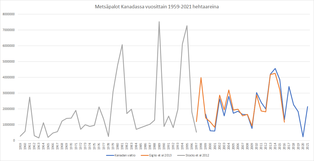 Päivitetty 29.7.2021 Päivitetty 25.8.2022 Lyttonin lämpöennätys on saanut uutisoinnin käymään tavallistakin kuumempana. Tragedia kanadalaisessa Lyttonin kylässä on saanut lehdistössä mittasuhteet, joiden mukaan tämän kylän palo antaa odottaa suunnilleen koko Kanadan metsien palamista samantien - ainakin kirjoitusten taso alkaa olla tätä luokkaa. Ydinviesti tuntuu olevan, että ilmastonmuutos on lisännyt metsäpaloja Kanadassa pahenevaan tyyliin. Aikaisemmissa faktantarkistuksissa on … Continue reading Kanada liekeissä – normaaliin tyyliin